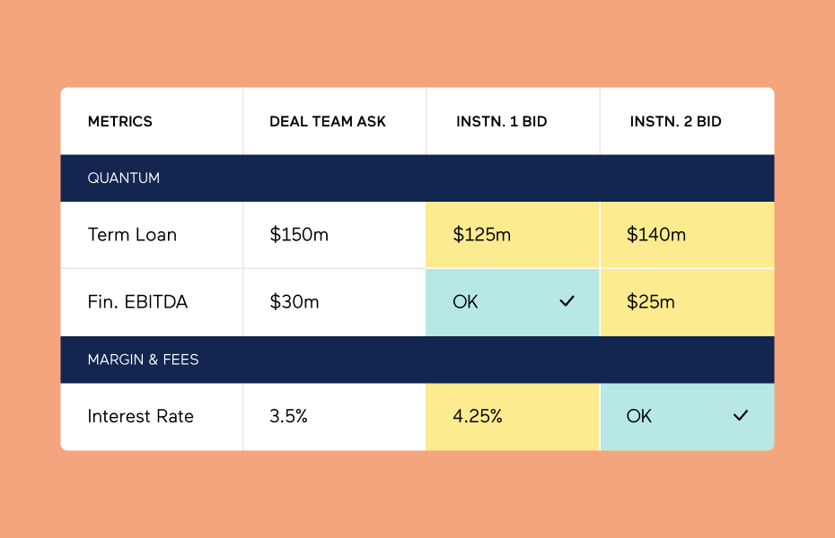 Control credit quality and governance of your underwriting parameters across all your deal terms and their transactions. Search and filter by sponsor, fund, industry, or financial metrics to drive faster, more informed decisions.
